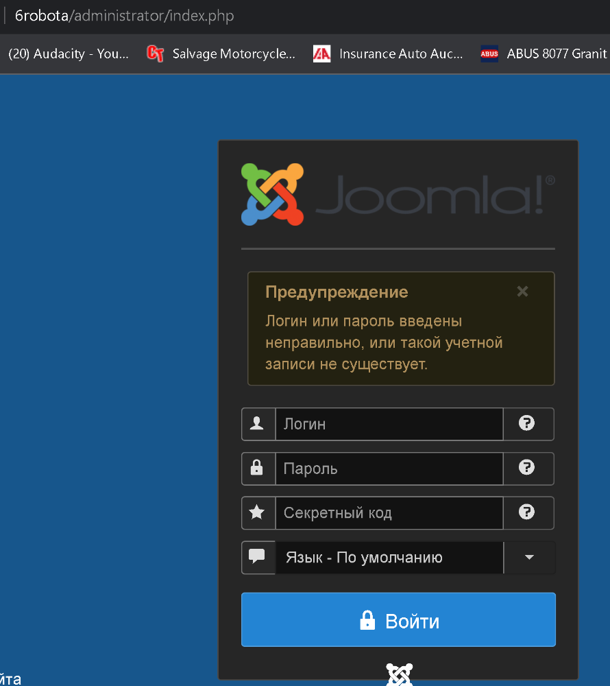 логин и пароль к joomla 6 самостоятельная