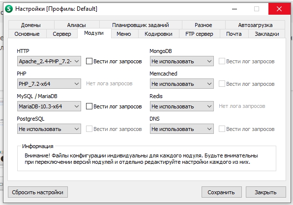 В Open Server надо открыть настройки - см. картинку