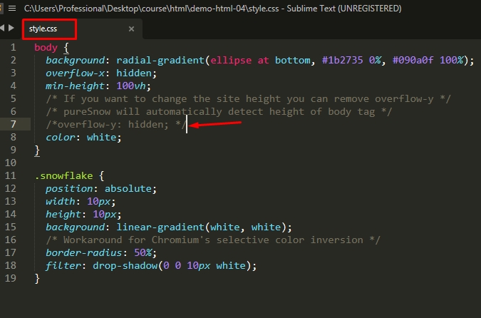 /* pureSnow will automatically detect height of body tag */